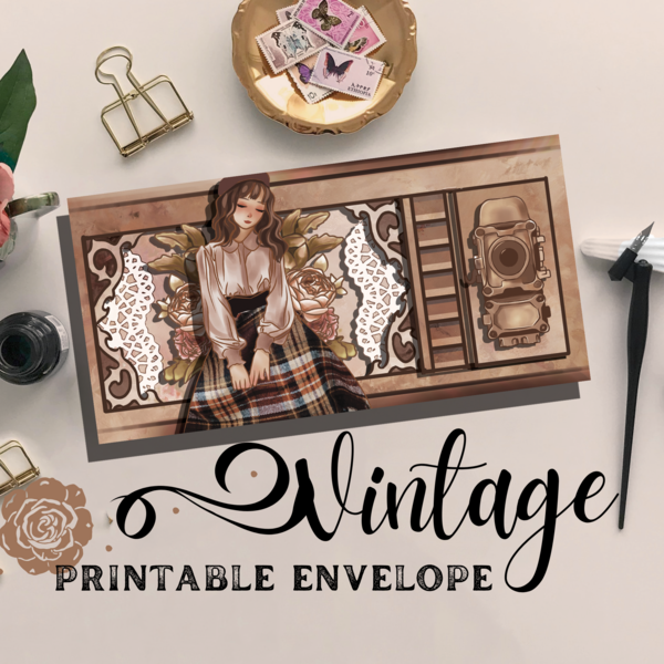 Cottagecore Printable Layered Window Cutout Envelope - Penpalling kit - Junk Journal ephemera